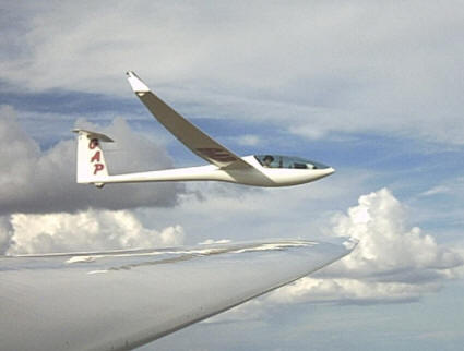 another. I give rides many weekends during the summer. I have had several soaring flights of over 6 hours (after a release from 2,000 ft.) and have flown out about 90 miles and back. This was in a Grob 103 which flies at nearly 40:1 glide ratio. |