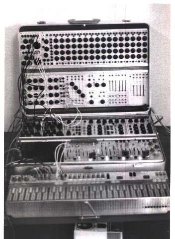 Later I had a great system with Buchla, Moog, Arp, Emu, etc. components. This picture is my Buchla (200 Series with the 208 Complex Oscillator Module , Easel , Sequencer etc. |